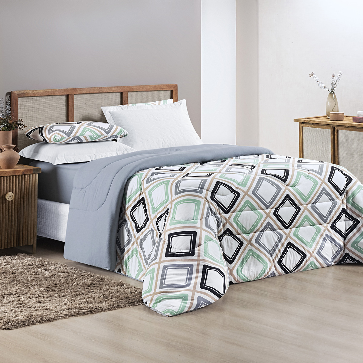 Dupla Face: Praticidade e versatilidade para alternar o visual do quarto.